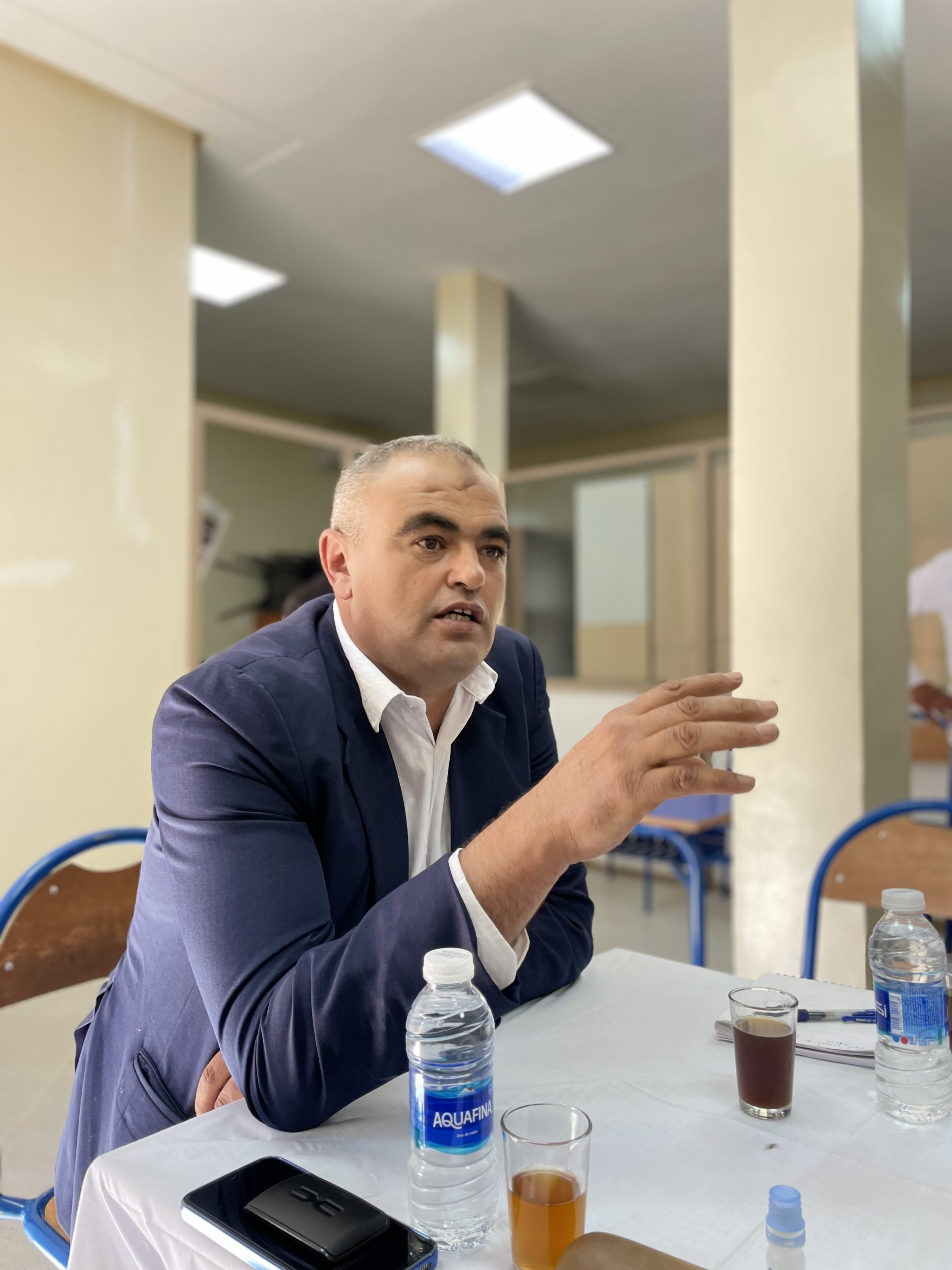 Le Conseil communal a alors décidé que l’accès à la scolarité était parmi leurs priorités. Il fallait améliorer le transport scolaire, il n’y avait qu’un bus scolaire qui reliait la commune d’Aghbar au collège de Tallat n’Yacoub à 15 Km. « Nous avons fait des demandes au gouverneur de la province d’Al Haouz et aussi à la région. Nous avons constaté qu’il n’y avait que quatre classes au collège. Notre foyer des étudiants était alors encore en construction. » Malheureusement, avec le séisme de septembre 2023, les écoles et le collège ont été détruits. « Grâce à nos partenaires comme l’Initiative National du Développement Humain et l’Entraide National, et les efforts du Conseil communal, le collège a été reconstruit avec plus de classes. » Mais la commune rencontre un nouveau problème qu’est l’exode des familles après le séisme. « Nous avons moins d’élèves. Un certain nombre de familles ont loué des maisons dans d’autres villes et restent là-bas jusqu’à la construction de leurs nouvelles maisons. »